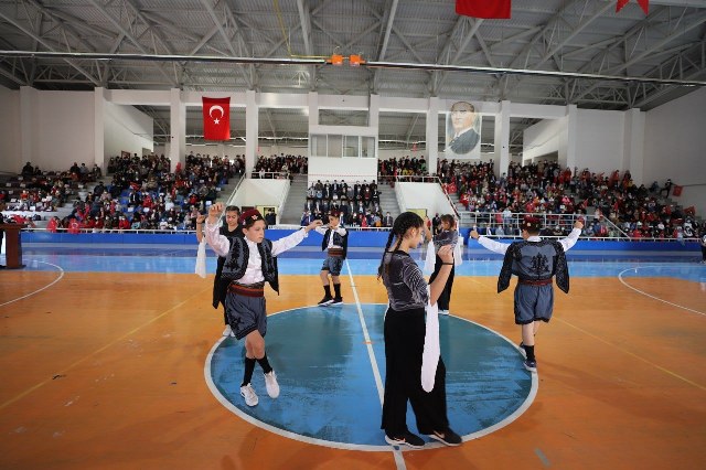 Programda Kaymakam Yıldız Büyüker ve Belediye Başkanı Yakup Otgöz, tören alanında halkın ve öğrencilerin bayramını kutladı. Kutlama etkinleri Saygı duruşunda bulunulması ve İstiklal Marşı’mızın okunmasıyla başladı.