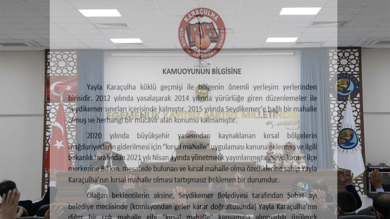 Seydikemer Belediyesi Kasım Ayı Meclis Toplantısı, Seydikemer Belediye Başkanı B. Önder Akdenizli başkanlığında Belediye Toplantı salonunda gerçekleşti. Toplantının kâtip üyeliklerini Mustafa Karakuş ve Yusuf Bağırcı yaparken, 3 gündem maddesinin yanı sıra 1 ek gündem maddesi görüşüldü. Gündem maddeleri oy birliği ile kabul edildi.